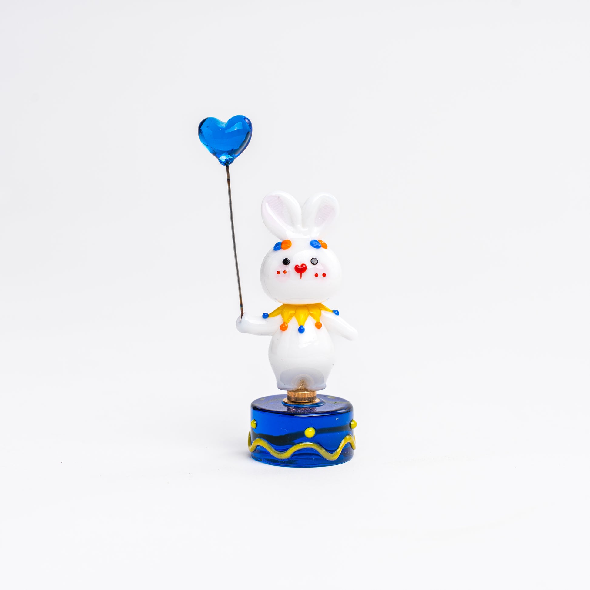 The bunny with a golden bow and blue heart balloon — always smiling and full of charm, the star of the carnival.
